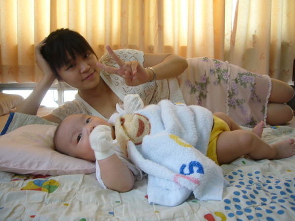 今年是我第一個..名正言順的母親節。下午姐姐的女兒--小瑄瑄打電話來,甜甜膩膩的跟我媽說外婆,母親節快樂喔*^-^*好可愛。等寶寶開口說母親節快樂這五個字,大概還好遙遠不過,只要孩子健康聰明,應該都是送給媽媽最好的禮物了吧!祝全天下的媽媽母親節快樂快三個月的昀哲..母子合照最近他在厭奶期,喝奶常在哭哭啼啼,真不乖....