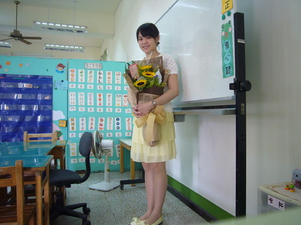 最歡樂的時光,總在最燦爛的時刻悄然流逝, (唱畢:在校生請坐下) 我們請畢業生同學代表獻花給導師,謹以馨香一束,永懷師恩。
